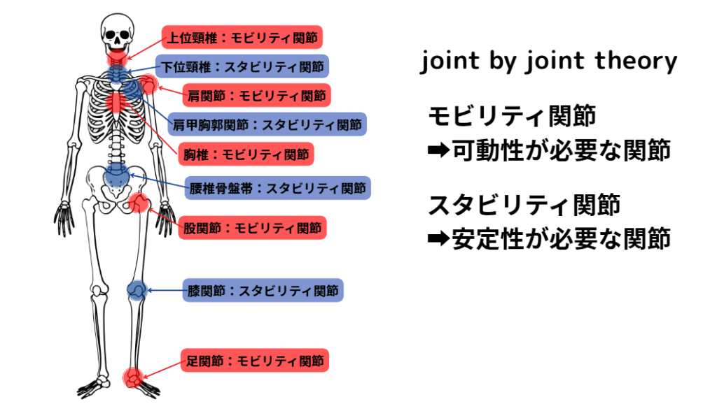 カラダに存在する各関節の役割はそれぞれ「モビリティ関節」(動きに特化した関節)と「スタビリティ関節」(安定性に特化した関節)に分けられます。