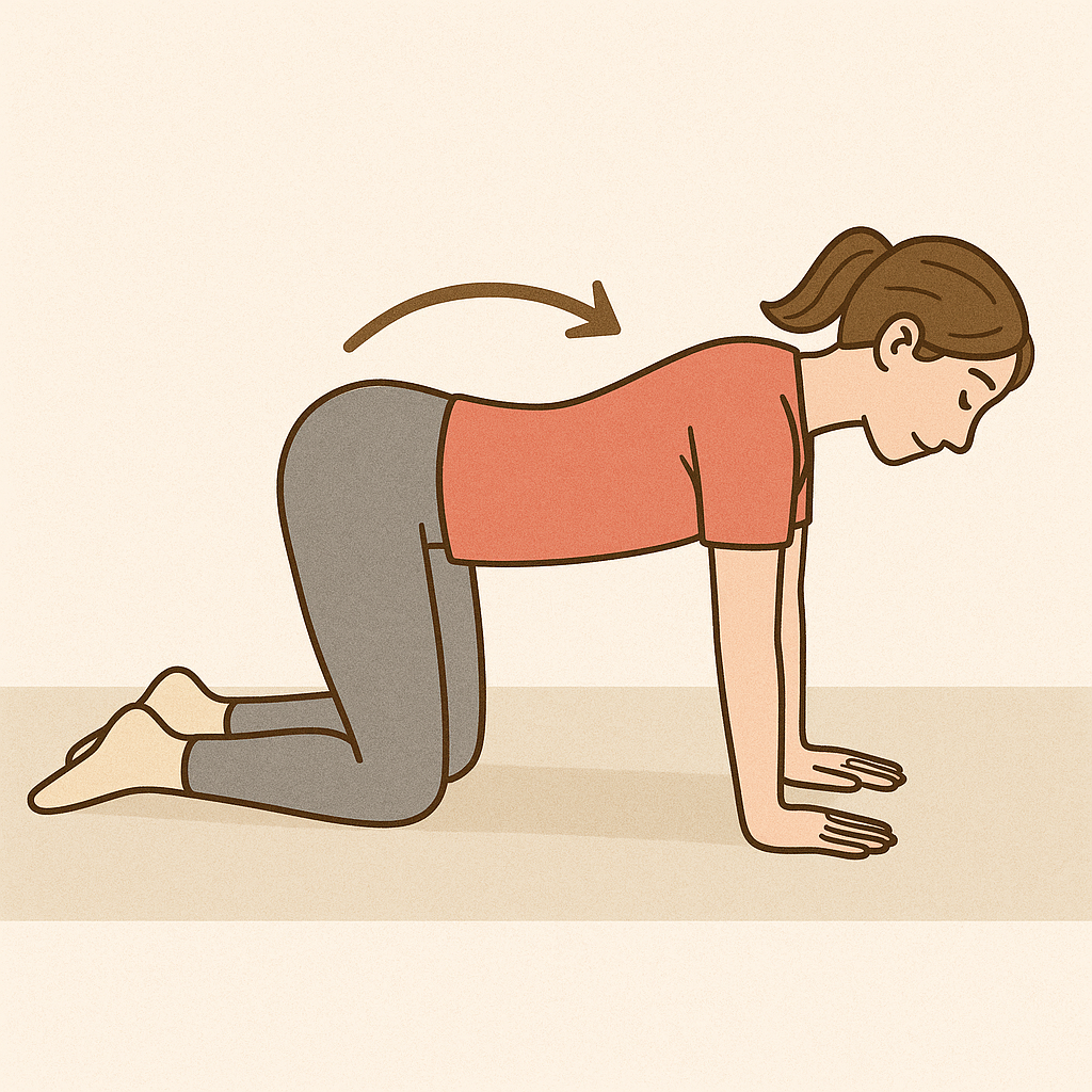 四つ這いの状態で骨盤を前後に動かしながら合わせて背骨も動かすことが重要です。産後は胎児の影響と育児負担の影響で本来の背骨-骨盤のバランスが保たれません。そのためにもしっかり連動させて全体を動かす様に意識しましょう。