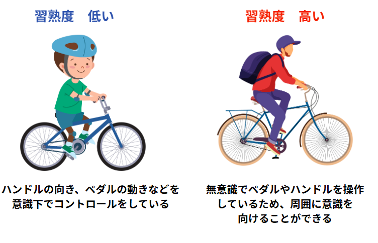 私たちの動作は大きく分けて「意識下(conscious)」と「無意識下(subconscious)」の2層で制御されています。 最初は意識してコントロールしなければできない動作も、繰り返すうちに無意識の動作として自動化されます。